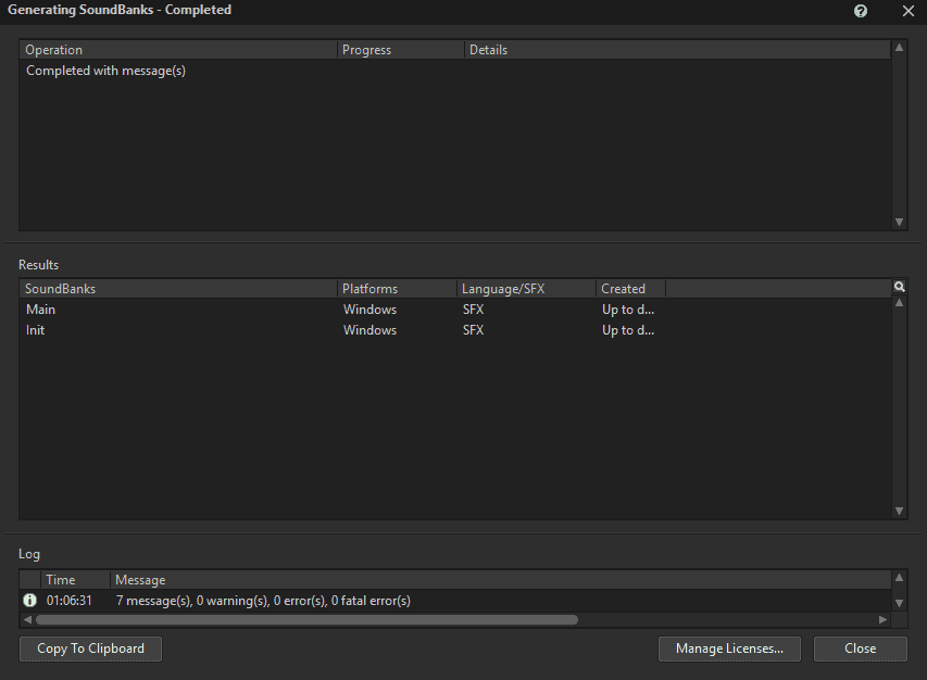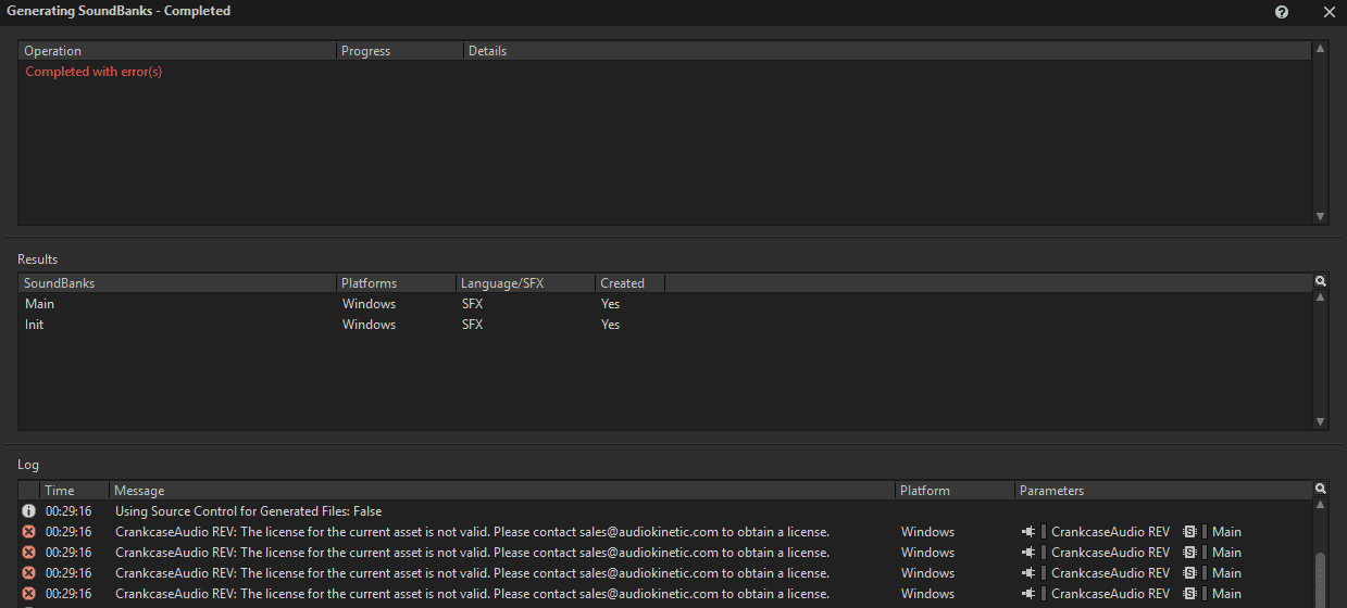 Well I suspect it’s because of this, if you try and generate soundbanks now, you’ll get an error.