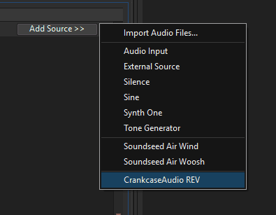 If you’re making a new Sound then after you create it, Add Source, and choose Crankcase Rev.